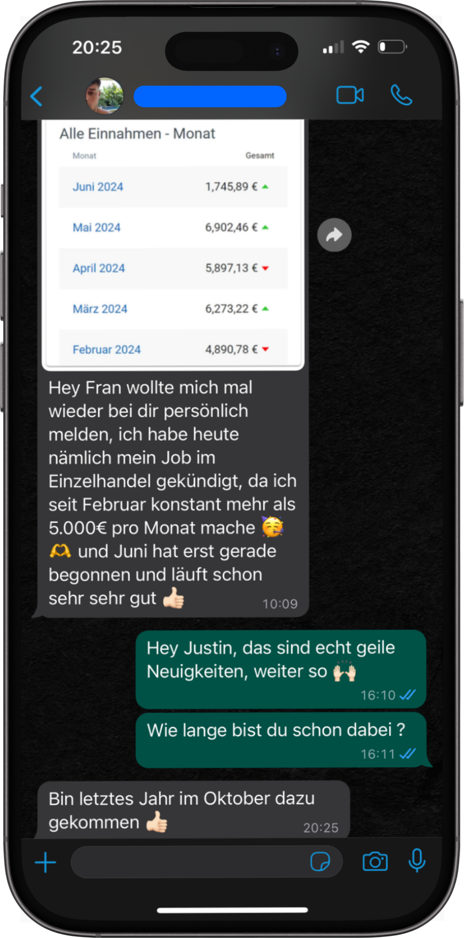 Auch wenn ich damals aufgrund von Schule und anderen Verpflichtungen wenig Zeit und Energie hatte und keinen klaren Plan, begann ich dennoch, in mein Wissen und meine Skills zu investieren. Jahr für Jahr durchforstete ich Informationen, investierte ich in Coachings und suchte mir Mentoren. Diese kontinuierliche Arbeit zahlte sich schließlich aus – ich fand den Schlüssel, um ein stabiles und profitables Einkommen online aufzubauen. Ich weiß jetzt, dass es egal ist, an welchem Punkt man sich befindet: Mit dem richtigen Plan kann jeder in kürzester Zeit ein erfolgreiches Online-Einkommen erzielen.