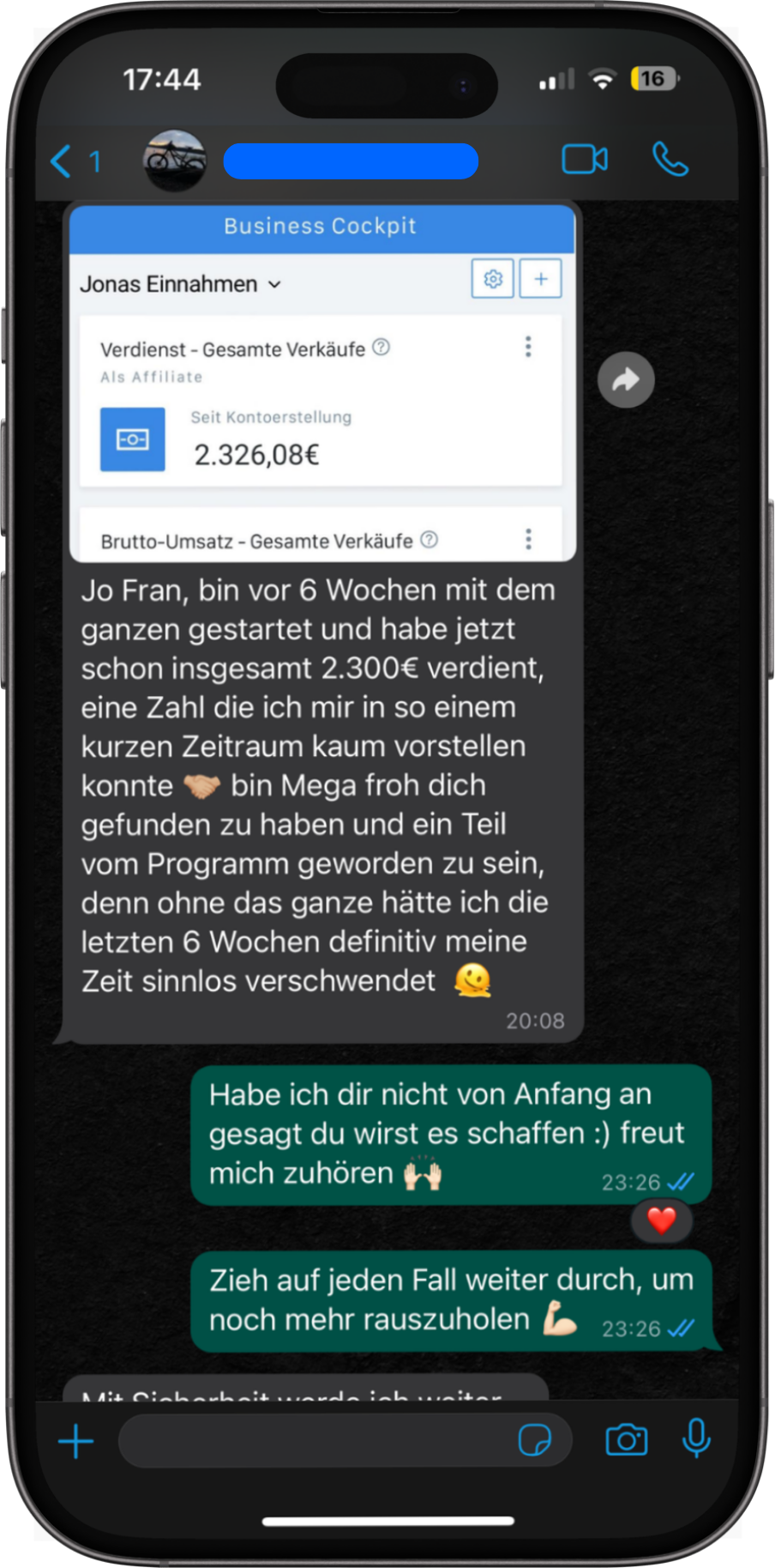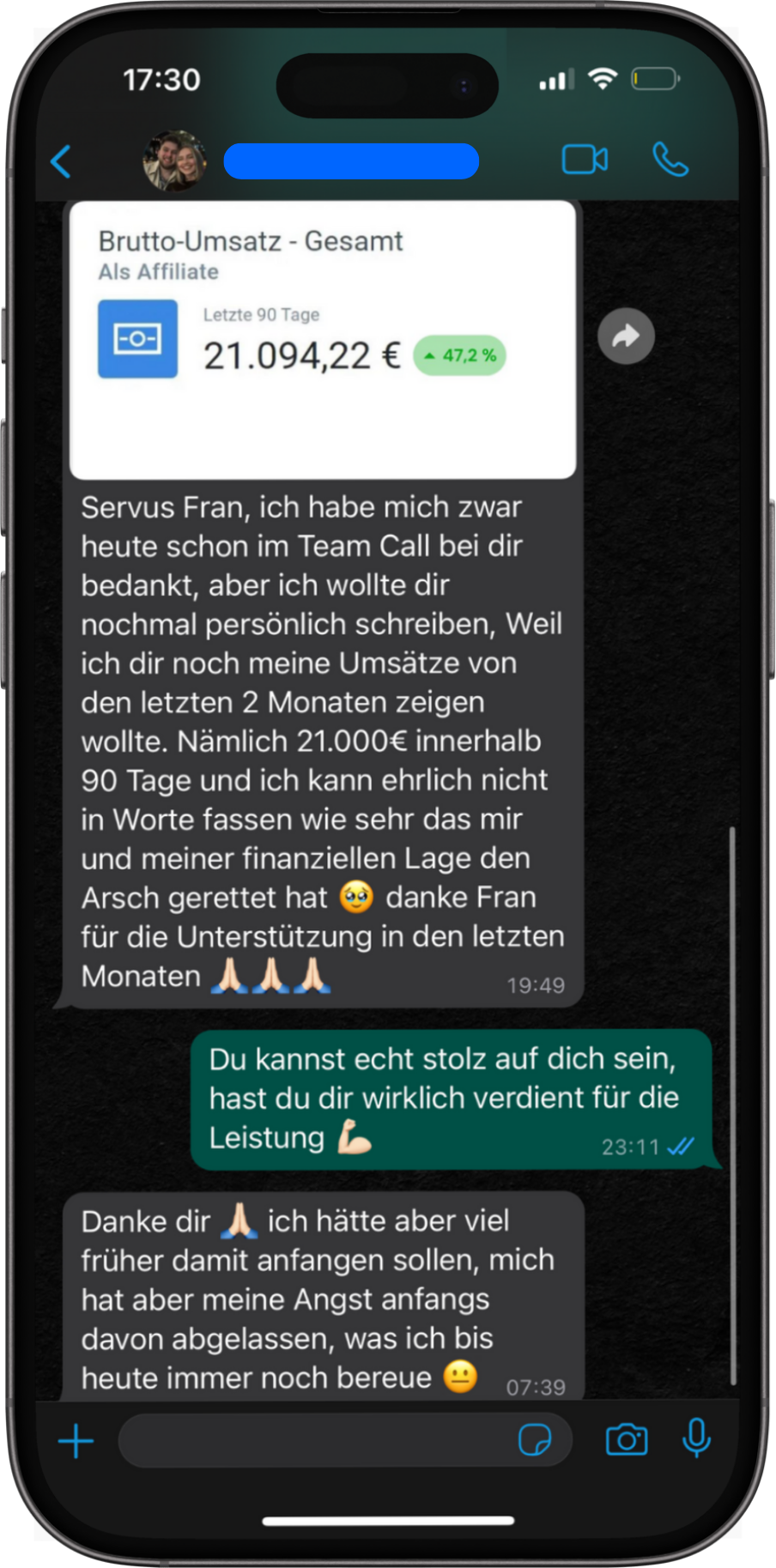 Heute kann ich ein Leben führen, das ich mir immer gewünscht habe. Ich arbeite mit voller Freude und Leidenschaft an meinem Business, ohne mir Sorgen um Zeit, Energie oder Geld machen zu müssen. Ich habe die Freiheit und Flexibilität, mein Leben nach meinen Vorstellungen zu gestalten, gleichzeitig für meine Familie da zu sein und solche Umsätze zu erreichen